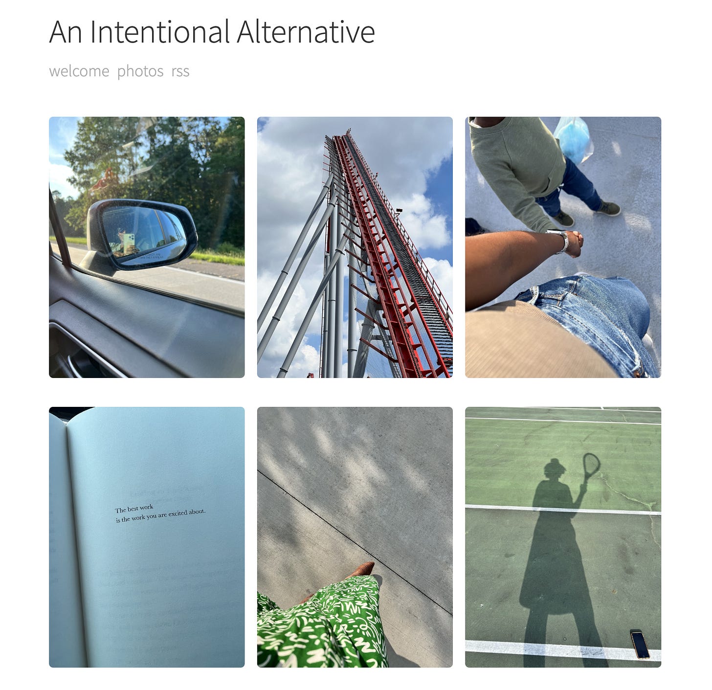 This online publication, For Those on the Journey, is for my writings and audio conversations with those who want to go deeper on this journey of living a life of intention. While nothing that I do is surface level or superficial, An Intentional Alternative is for photo sharing, this space is for us to go deeper together. As an analogy, think of it as the difference between an online magazine vs. (the 2013) Instagram. Two separate functions and purposes.